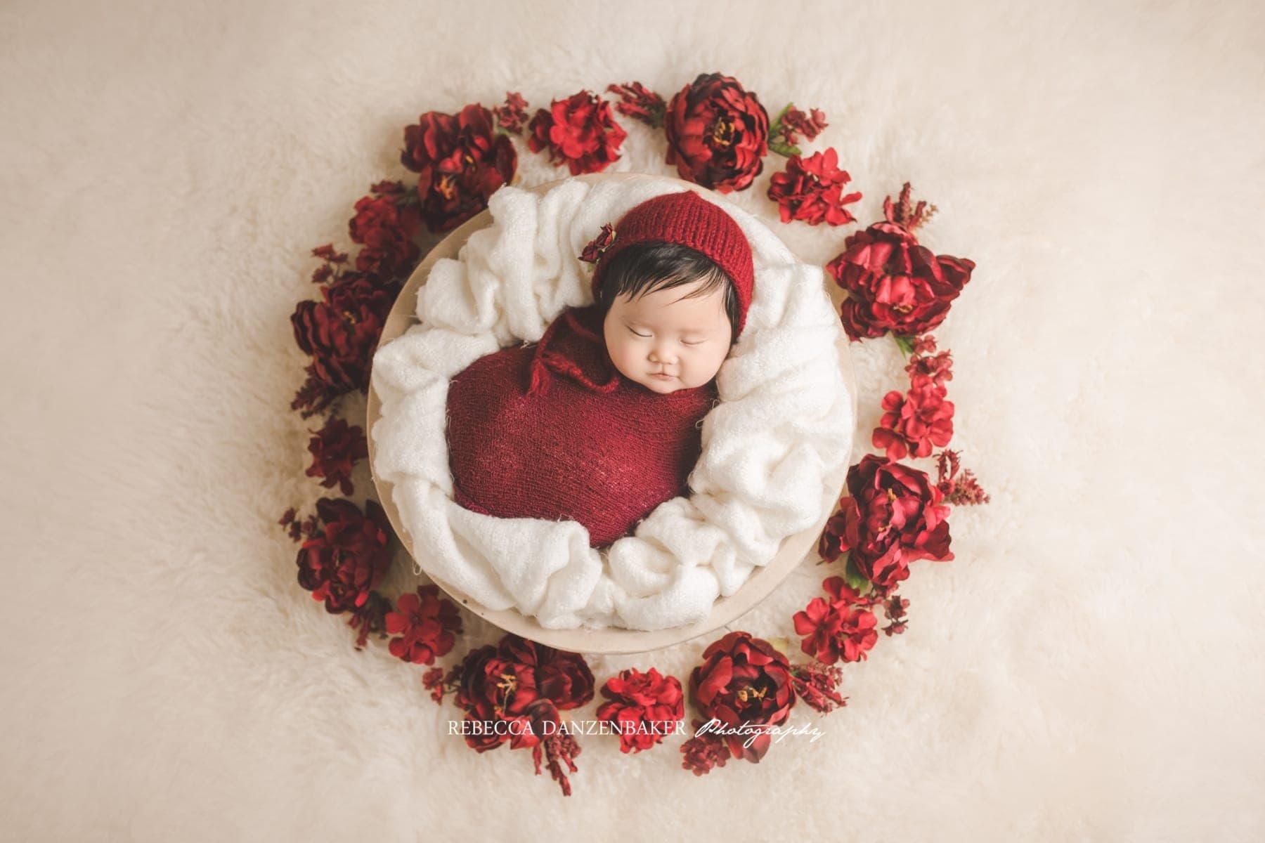 Rebecca Danzenbaker is a Northern Virginia baby photographer located in Willowsford in Ashburn, VA, part of Loudoun County. With over 15 years of experience, her artistic baby photography is considered the best in the region due to her expert baby posing, lighting knowledge, patience, and care working with babies. Her baby photo studio has hundreds of props, hats, blankets and wraps to allow you to customize the session to your tastes.