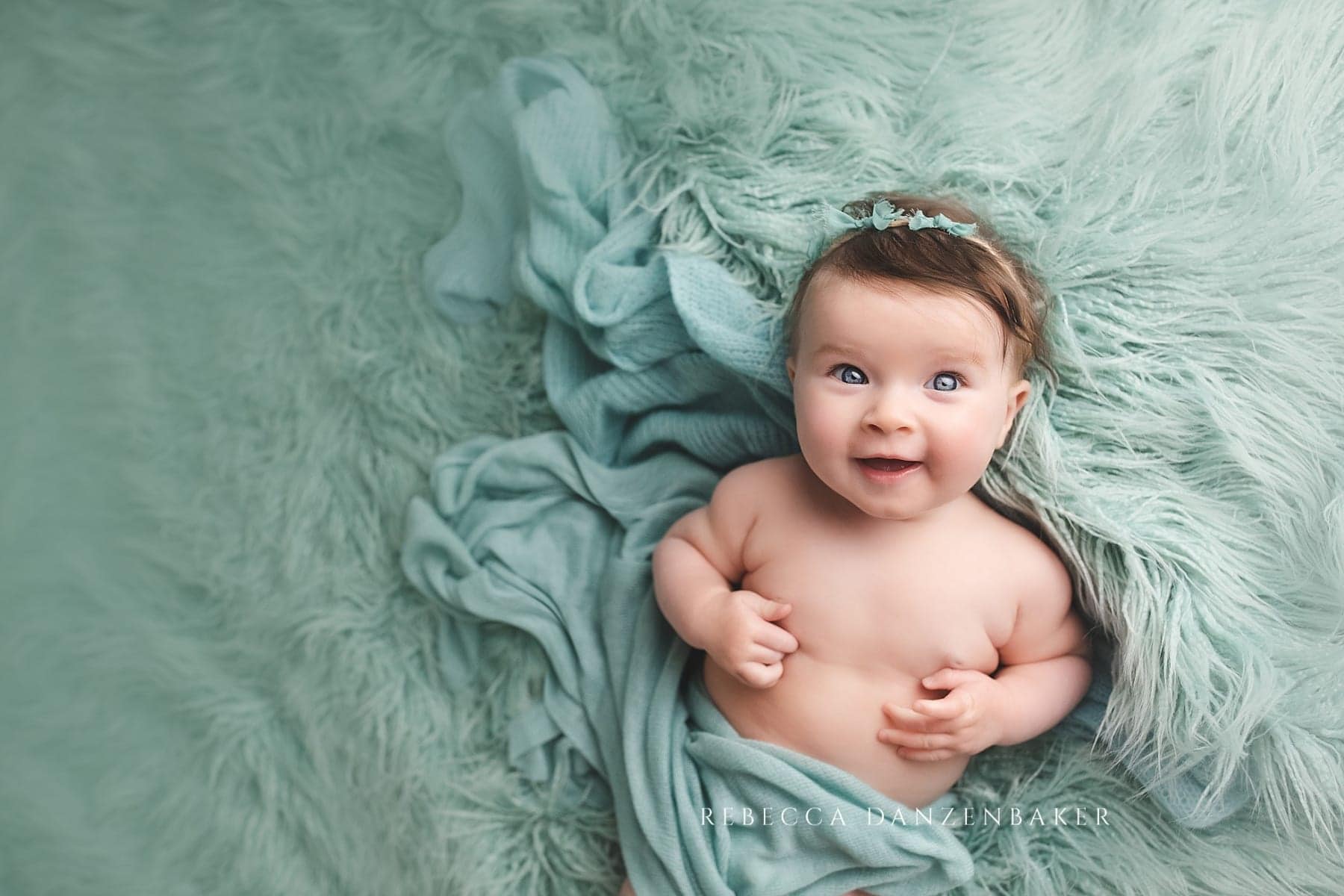 Rebecca’s baby photography sessions are all-inclusive. You’ll receive all retouched digital images after the session and can print them at the sizes you wish from the photo labs of your choice. The baby portrait session package description and pricing are located here.